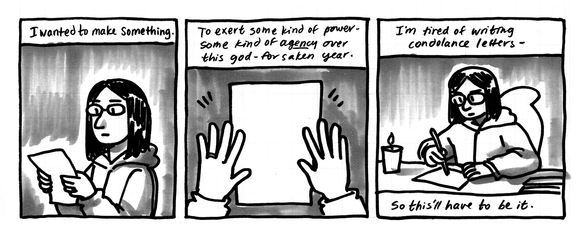 Journal comics from 2020 to 2023, originally published online, in The Gutter Newsletter, and in a variety of zines.
