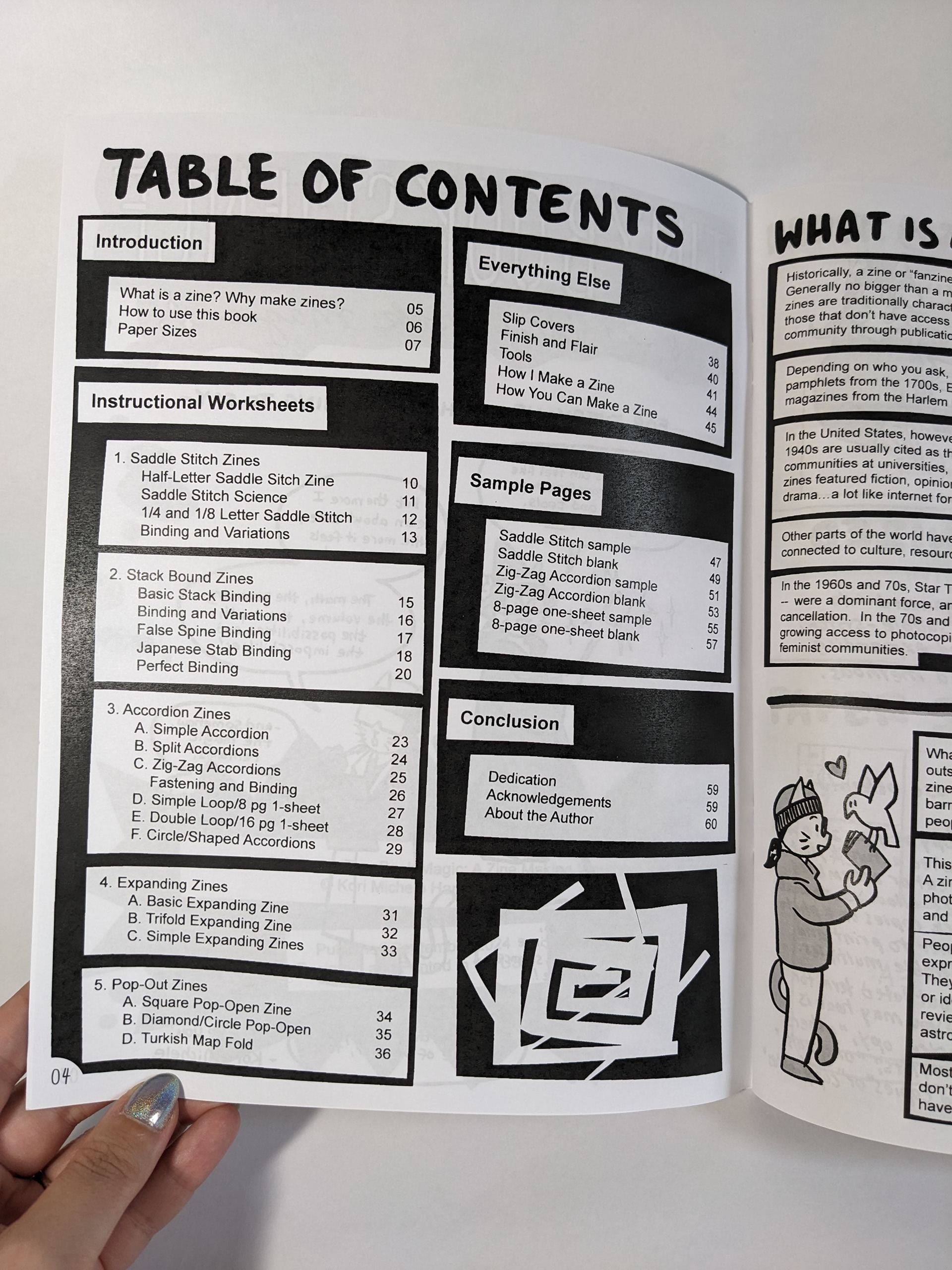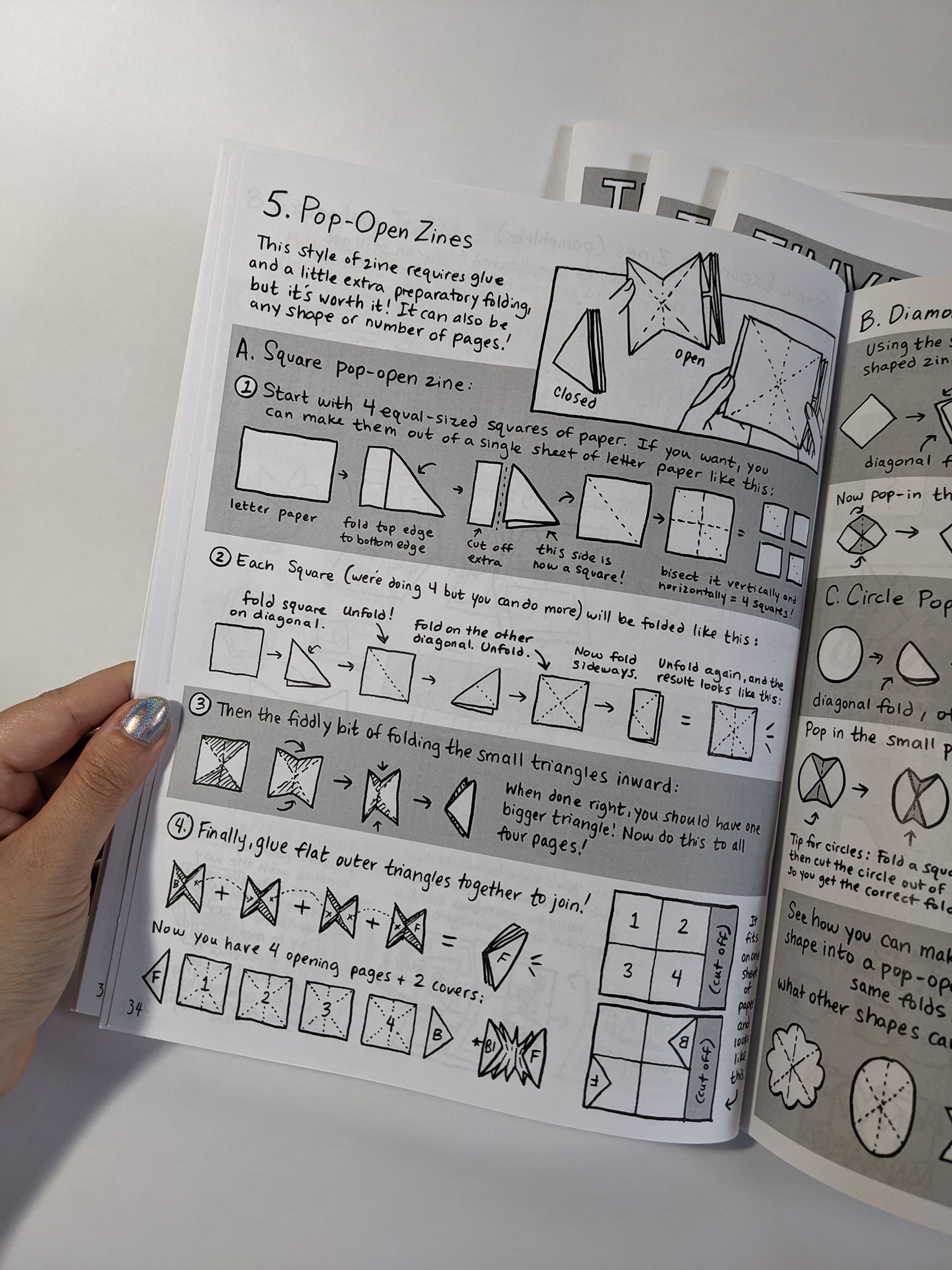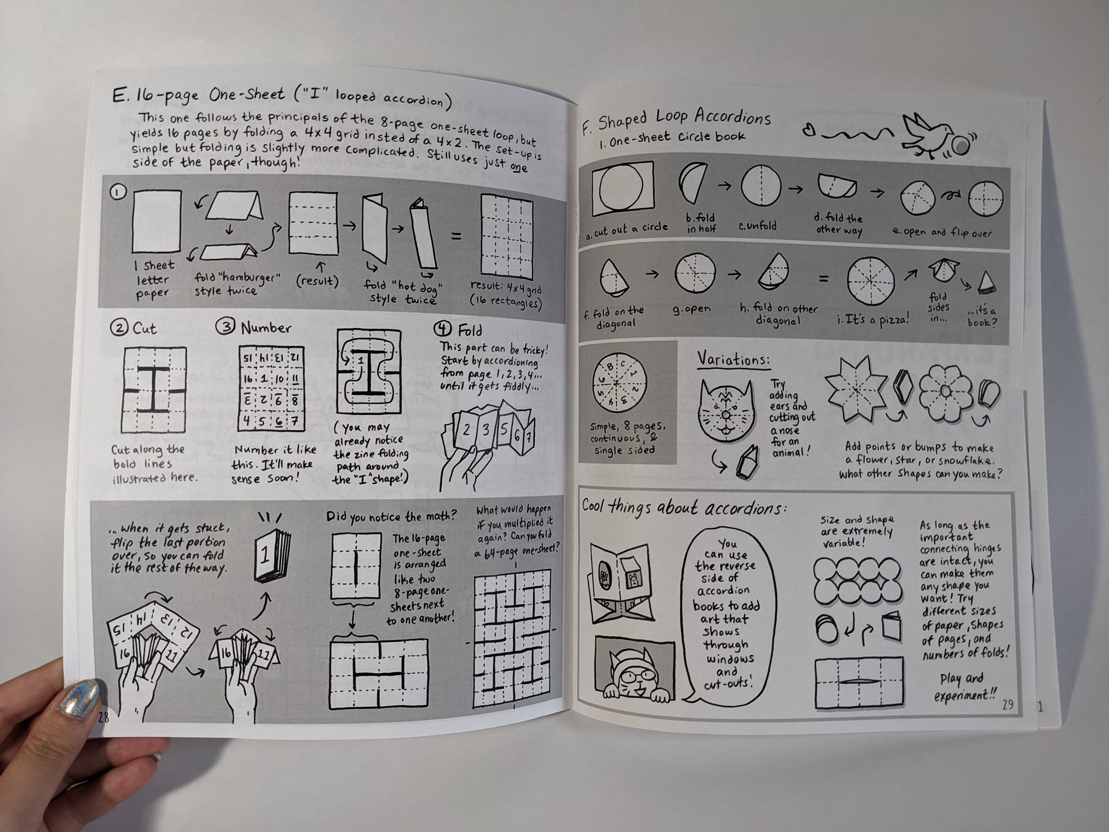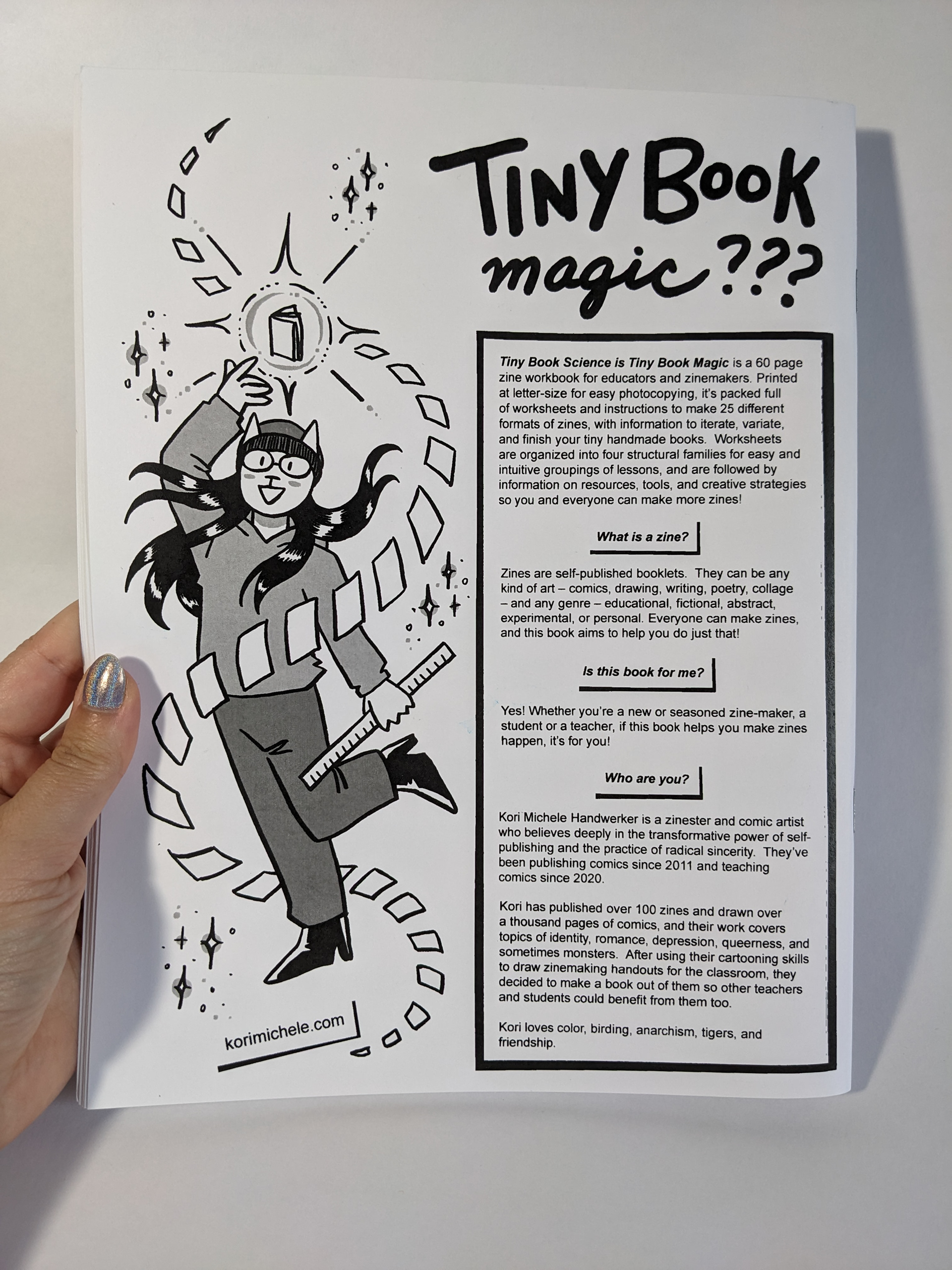 Tiny Book Science is a 60 page Zine workbook for educators and zine-makers. Printed at letter-size for easy photocopying, it's packed full of worksheets and instructions to make 25 different formats of zines, with information to iterate, variate, and finish your tiny handmade books.